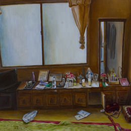 Poong-gyeong (Scenery/風景) is a view and at the same time can be a scene or situation. You have to perceive the object, feel the atmosphere, and recognize the situation, not simply experience the scenery itself spread out in a specific place. Therefore, Poong-gyeong goes beyond the place itself and is directly connected to the viewer's gaze. It's not about where you are, but about what you see. In the fifth project of Gongjaksaebang Poong-gyeong, Hyein Lee and Yukako Kondo show us their own unique scenery --distinct from anyone else's. It is both a collection of perception and senses, and a space where time and stories are accumulated. For several years, Hyein Lee has personally been going outdoors to find places that attract her, and she has even accidently captured unpredictable scenes among and within the surrounding scenery. Whether it was a field in Neunggok or the streets in Berlin, the specific reproduction of a scene wasn't her focus or goal. Rather, she tried to visually express her embodied memories and experiences while considering why she stayed in certain places and what kind of relationship she had with them. This led to concerns about why she should draw certain objects and furthermore, when certain objects are removed, what would be left to draw. Through the process of focusing on her own memories and thoughts, she faced the landscape solely inside her. Now, Lee steps away from the medium of representational form and begins to express the scenery that comes to mind only by color, touch, and movement. In a large and bright oil painting, we find a tree infused with gentle, soft light. The artist has been frequently visiting the tree for years--which she encountered somewhere in Heyri while taking a quiet walk--greeting and conversing with it while feeling its warmth. With the everyday change of its color, shape, and scent, she experienced that her stubborn heart gradually opened up. The canvas is filled with a vitality sufficient in its own presence, and a unity where one takes care of another, embraces, saves, and communicates. Her new drawings reveal a new phase the artist is exploring, her pure inner scenery. She chose oil pastel to immediately respond to such rich senses and emotions. Lee cautiously says that she is converting once-felt sounds, movements, touches, and other perceived senses into painterly language, and perhaps this process leans toward abstraction. In the symphony of various lines and colors, we sometimes think of familiar figures at first glance, but the artist makes it clear that the result was drawn by a free-flowing hand. Perhaps it is a process of following traces in the mind, out of curiosity, related to an unopened, unknown world. The artist's sparkling joy of discovering the scenery inside her is also effectively conveyed to the viewers. Hyein Lee has had solo exhibitions such as L. Practice (2022, Museumhead, Seoul), Sync (2018, Sindoh Art Space, Seoul), Golden Tree Company (2016, Gallery Kiche), Perfect Days (2015, Doosan Gallery, New York/2013, Daegu Art Museum), Y Artist Project 2, and participated in numerous group exhibitions, including two-person exhibitions such as Aura, Met at the Corner (2021, Art Centre Art Moment, Seoul) and Absence and Distance (2017, Baik Art, Seoul). She has been selected for various artist support programs and awards, including the 18th Street Arts Center Residency Program (2018, Santa Monica), Sindoh Artist Support Program (2017, Seoul), Doosan Residency (2015, New York), Chongkundang Yesuljisang (2012), and Künstlerhaus Bethanien, Germany (2012). She received her BFA and MFA in Fine Arts at Seoul National University. The scenery in Yukako Kondo's room speaks to us as if it were our own grandmother's house, carefully kept throughout her whole life. As soon as we realize that only objects fill the room--with no sign of people--the scene becomes rather embarrassing and unfamiliar. Alongside the warm affection of a private space filled with cherished objects from intimate people, we encounter the emptiness and loneliness of facing a family home where the family itself has disappeared, a mother's household goods where the mom has evaporated. Her still life frighteningly awakens the fact that the mundane everyday life is connected with death. After a peaceful or warlike routine, the debris-ridden scene exists but is soon forgotten, until someone looks back on it to give it meaning. Even as we reach the point of death, this place will continue on. With this in mind, Yukako Kondo utilizes furniture and objects that are strongly rooted in one place and function as part of the room's eternal nature, such as mountains, rivers, trees and rocks. The artist explains, "I try to give up my visible perspective and look at the story contained in the object, its past and future together." It is a perception that includes past memories and future events to come. This indoor nature tells many stories due to much accumulated time, adding a weightiness to even the smallest object. Nap and Guest, a painting of her childhood home, resembles an unfolded picture of a torn-apart cube and yet is simultaneously free from the laws of physics. All elements tell the story with their own perspective and composition, and the viewer imagines what will happen throughout the house with the excitement of peaking into the magic box that mysteriously overlaps and opens. Kondo tries to let us hear a quiet voice beyond the joys and sorrows of life by meticulously recording a dust-covered, mother-of-pearl mirror in the family's familiar space, the messy kitchen that should have been cleaned up, and the less noticeable necessities that show her great aunt's interest and daily life. Just as the artist herself did, I hope we experience the comfort and strength to live from that beauty, because your and my days are boring but precious, and commonplace but noble. Yukako Kondo has presented solo exhibitions such as Tales of Room (2021, O'NewWall Ejuheon, S